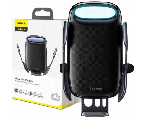 Вес: 170 гСмартфон удерживается в держателе с помощью зажимов, благодаря которым он будет не только надёжно закреплён и не поцарапается. А благодаря шарниру вы можете свободно поворачивать свой смартфон на 360 градусов и изменять угол наклона для комфортного обзора. Более того, автодержатель позволяет не только удобно закрепить ваш смартфон в автомобиле, чтобы комфортно использовать его во время пути, но и одновременно заряжать его. Такая возможность реализована благодаря тому, что Baseus Milky Way Electric оснащен технологией беспроводной зарядки Qi (15W).Всё, что необходимо сделать, это подключить автодержатель к питанию, например в прикуриватель и закрепить смартфон на держателе. Baseus Milky Way Electric имеет цветной индикатор который показывает состояния держателя на момент использования заряда вашего гаджета, при зарядки мобильного телефона индикатор переливается зеленым цветом.Когда гаджет полностью заряжен индикатор переливается синим цветом оповещая вас о полной зарядке мобильного телефона. Компания Baseus в этой новой модели держателя Milky Way Electric добавила очень удобную сенсорную кнопку которая находится в левом верхнем углу держателя.Особенности: