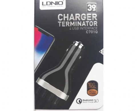 У Вас много различных гаджетов и Вы ищете качественное зарядное устройство? Компания LDNio предлагает Вам надежное, многофункциональное, зарядное устройство LDNio Car Charger DL-C701Q. Его главной особенностью является возможность одновременной зарядки до 4 гаджетов, а благодаря технологии Auto-ID Ваши устройства будут заряжаться максимально быстро. Устройство поддерживает Qualcomm Quick Charge 2.0 - на это выделен 1 специальный USB порт. LED подсветка, защита от перенапряжения, защита от короткого замыкания, комплектный Micro USB кабель и сумарная сила тока в 7А - максимальная функциональность от фирмы LDNio.