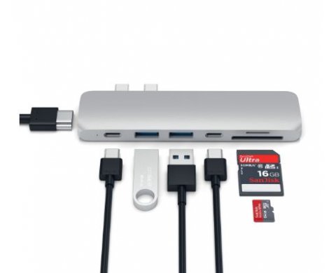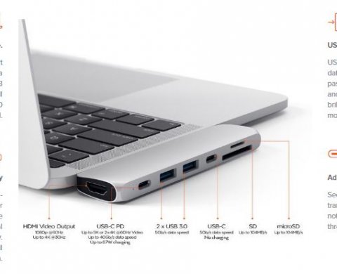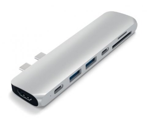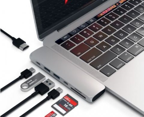 Переходник от компании Satechi выдержан в том же стиле, что и известная техника бренда Apple. Гладкий полированный серебристый корпус из прочного алюминия прекрасно смотрится с вашим девайсом. Компактное устройство оснащено большим набором портов, позволяющих подсоединять любую технику к ноутбуку. Используя порт HDMI можно добиться качественного вывода видеоизображения с высоким разрешением на экраны мониторов 4K. Просто подключите кабель HDMI от адаптера Pro Hub к внешнему монитору для просмотра кристально чистого изображения.