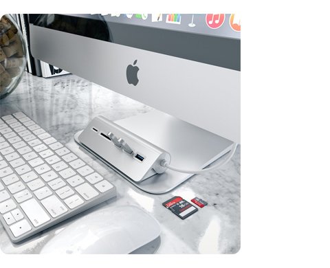 Хаб и картридер Satechi Aluminum USB 3.0 Hub & Card Reader удобен в использовании, компактен и невероятно универсален. Корпус хаба изготовлен из легкого алюминия, поэтому он не только выглядит стильно и современно, прекрасно сочетаясь с техникой Apple, но также прочный и износоустойчивый.