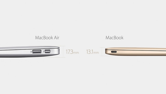 То, что новый MacBook стал более компактным, видно невооруженным взглядом, без дополнительных объяснений и уточнения размеров. Но заявленные параметры произвели впечатление, толщина уменьшилась на 24% по сравнению с Air и составляет 13,1 мм. Вес модели удалось сократить до 910 г. Другие внешние данные также не остались без внимания. Так, пользователей заинтересовал новый 12-дюймовый IPS дисплей с разрешением 2304х1440 пикселей. Толщина панели предельно мала - 0,88 мм. При этом создателям удалось снизить энергопотребление монитора на треть, что также не может не радовать.