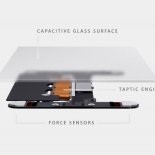 У сверхтонкого лэптопа появилась и особая клавиатура со стеклянным тачпадом, который распознает силу нажатия. Нажав на трекпад, можно активизировать электромагнит, отвечающий за тактильную обратную связь. Несмотря на миниатюрные размеры всего устройства, клавиатура получилась полноразмерной, оснащенная механизмом "бабочка". Принцип крепления клавиш обеспечивает стабильную сбалансированную работу клавиатуры. В дополнение пользователи получают персональную светодиодную подсветку для каждой кнопки.