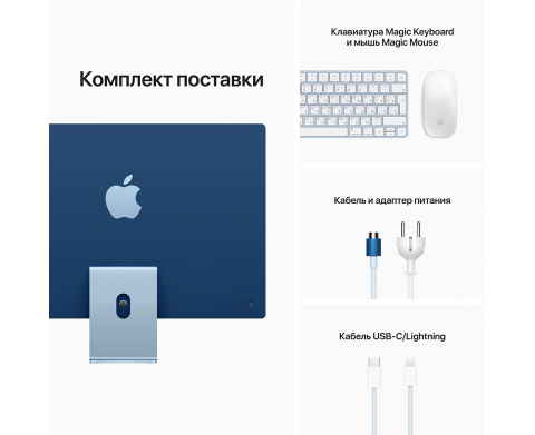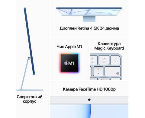 Apple iMac 24" Retina 4,5K, (M1 8C CPU, 8C GPU), 8 ГБ, 256 ГБ SSD, синий (MGPK3)