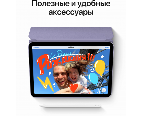 Дисплей Liquid Retina с диагональю 8,3 дюйма. Технология True Tone, широкий цветовой охват P3 и отличная защита от бликов делают текст чётким, а цвета яркими в любых условиях. Apple Pencil крепится при помощи магнитов к боковой поверхности iPad mini. Если вам нужно быстро набросать рисунок или записать что-то важное на встрече, он всегда под рукой. iPad mini представлен в четырёх превосходных цветах. Новые динамики работают в стереорежиме, если расположить iPad mini горизонтально. Отличный вариант, чтобы посмотреть сериал в дороге или послушать любимый плейлист на прогулке в парке. Датчик Touch ID встроен в верхнюю кнопку. С его помощью можно быстро, удобно и безопасно входить на сайты и в приложения, разблокировать iPad и оплачивать покупки. Новый чип A15 Bionic делает компактный iPad mini ещё и очень мощным. Он справится со всем — и с проверкой почты, и с редактированием снимков в Photoshop. Вы сможете использовать продвинутые приложения, снимать контент в высоком качестве и воплощать свои творческие замыслы в жизнь где угодно.