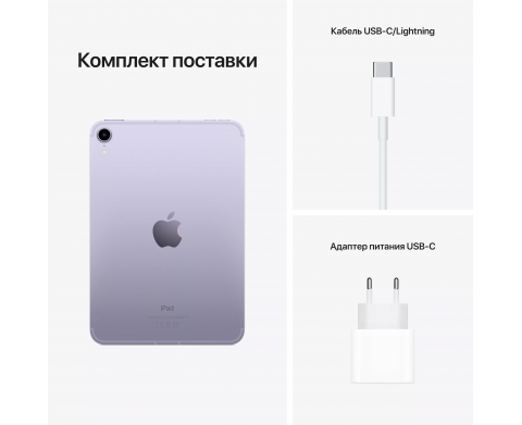 8.3" IPS (2266x1488), iPadOS 15, Apple A15 Bionic, ОЗУ 4 ГБ, флэш-память 256 ГБ, Wi-Fi + сотовая сеть (nano‑SIM + eSIM), цвет фиолетовый