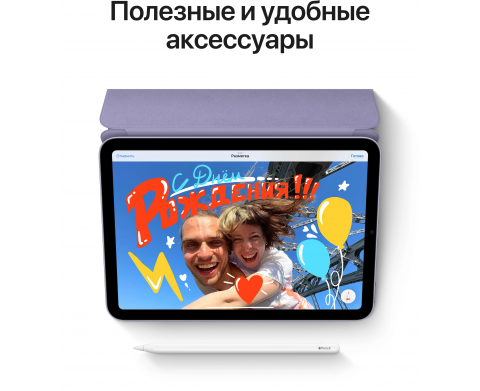 Дисплей Liquid Retina с диагональю 8,3 дюйма. Технология True Tone, широкий цветовой охват P3 и отличная защита от бликов делают текст чётким, а цвета яркими в любых условиях. Apple Pencil крепится при помощи магнитов к боковой поверхности iPad mini. Если вам нужно быстро набросать рисунок или записать что-то важное на встрече, он всегда под рукой. iPad mini представлен в четырёх превосходных цветах. Новые динамики работают в стереорежиме, если расположить iPad mini горизонтально. Отличный вариант, чтобы посмотреть сериал в дороге или послушать любимый плейлист на прогулке в парке. Датчик Touch ID встроен в верхнюю кнопку. С его помощью можно быстро, удобно и безопасно входить на сайты и в приложения, разблокировать iPad и оплачивать покупки. Новый чип A15 Bionic делает компактный iPad mini ещё и очень мощным. Он справится со всем — и с проверкой почты, и с редактированием снимков в Photoshop. Вы сможете использовать продвинутые приложения, снимать контент в высоком качестве и воплощать свои творческие замыслы в жизнь где угодно.