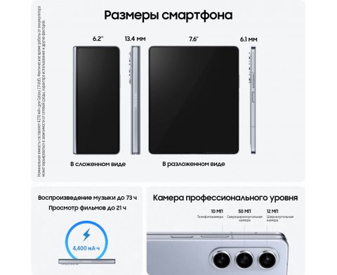 | Фронтальная камера | 10 Мп (на внешнем экране, 85˚) |