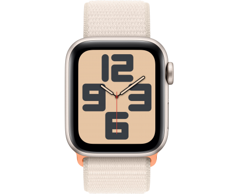 Apple Watch SE 2023, 40 мм, корпус из алюминия цвета «сияющая звезда», спортивный текстильный ремешок цвета «сияющая звезда» (MR9W3)