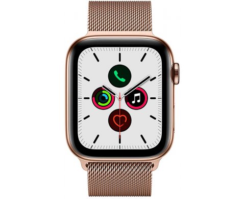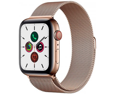 Apple Watch Series 5 LTE внешне идентичны 4-ой версии. Экран AMOLED 1.57" (324x394, сенсорный), шагомер, пульсометр, время работы: 18 часов.