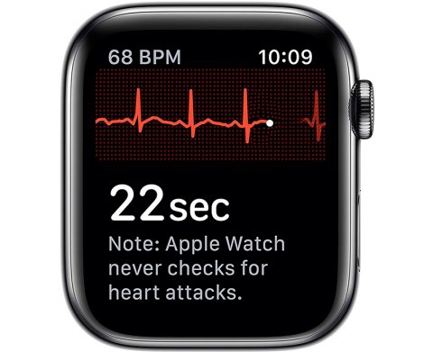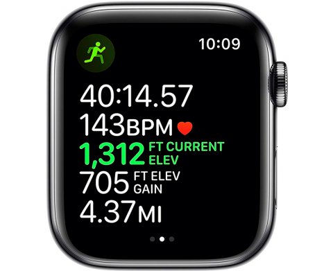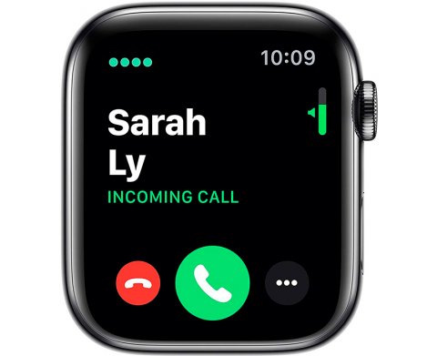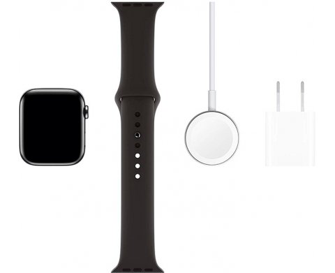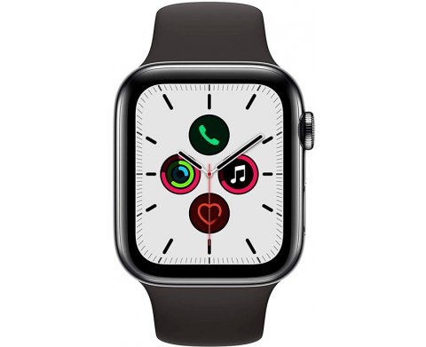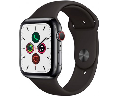 Apple Watch Series 5 LTE внешне идентичны 4-ой версии. Экран AMOLED 1.57" (324x394, сенсорный), шагомер, пульсометр, время работы: 18 часов.