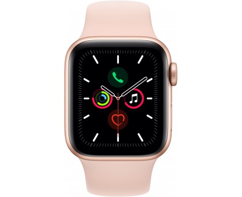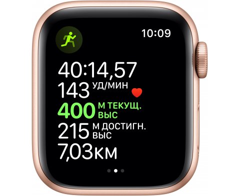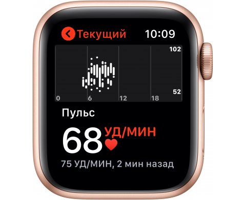 Apple Watch Series 5 внешне идентичны 4-ой версии. Экран AMOLED 1.57" (324x394, сенсорный), шагомер, пульсометр, время работы: 18 часов.