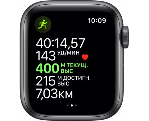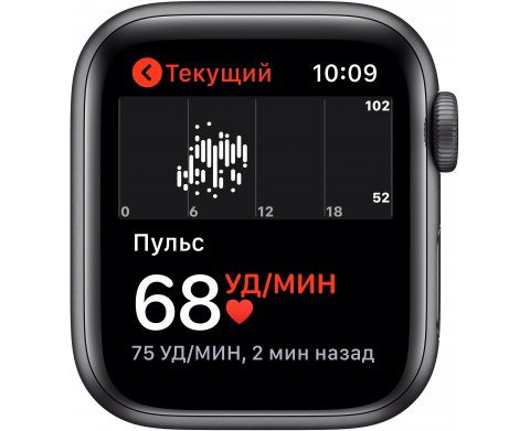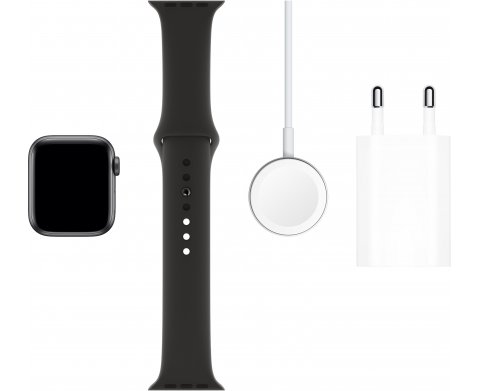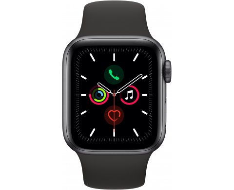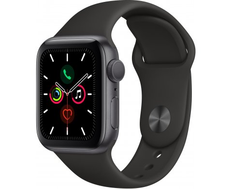 Apple Watch Series 5 (MWV82RU/A), 40 мм, корпус из алюминия цвета «серый космос», спортивный браслет чёрного цвета