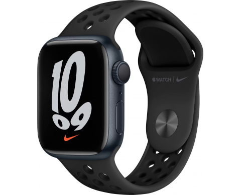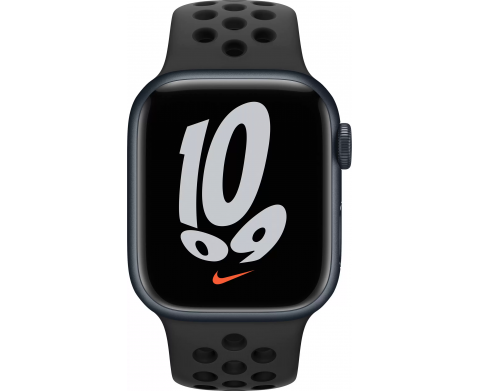 Apple Watch Nike Series 7, 41 мм, корпус из алюминия цвета «тёмная ночь», спортивный ремешок Nike цвета «антрацитовый/чёрный» (MKN43)