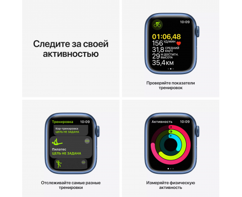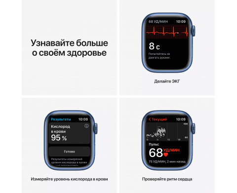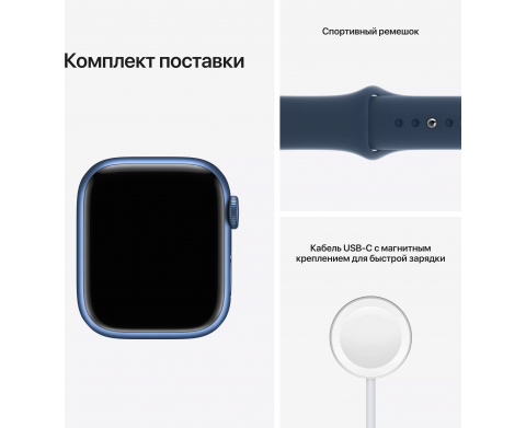 Спецификация Apple Watch Series 7, 41 мм, корпус из алюминия синего цвета, спортивный ремешок «синий омут» (MKN13)