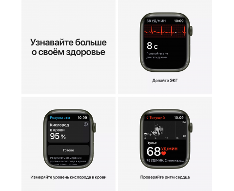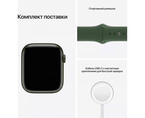 Спецификация Apple Watch Series 7, 41 мм, корпус из алюминия зеленого цвета, спортивный ремешок «зелёный клевер» (MKN03)