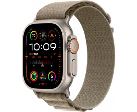 синхронизация с iOS, экран OLED, поддержка SIM-карты: e-SIM, пульсометр, измерение кислорода в крови, ЭКГ, AOD, GPS, Bluetooth 5.3, корпус: металл (титан), ремешок: ткань, размер 165 — 210 мм.