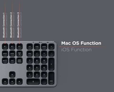 Satechi Aluminium Bluetooth представляет собой стильную беспроводную клавиатуру для iOS-устройств. Она имеет ультратонкий форм-фактор и выполнена из прочного облегченного алюминиевого сплава. Раскладка данной модели имеет русские и английские символы. В ней использованы высококачественные переключатели клавиш, обеспечивающие быстрое и точное срабатывание. Встроенный аккумулятор позволяет работать в активном режиме до 80 часов или до 100 дней в режиме ожидания.