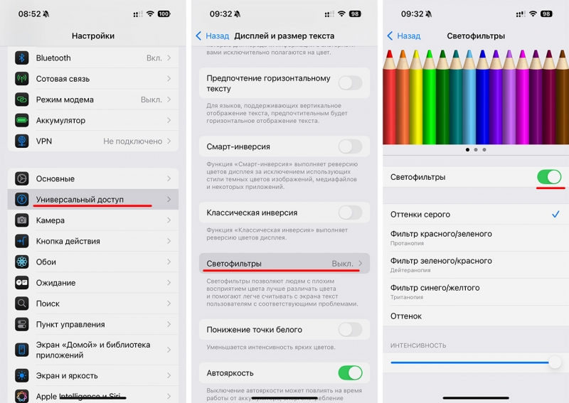 пр. Победителей, 125 Если экран вашего iPhone внезапно стал чёрно-белым, «синим», «красным» или изменил цвета, скорее всего, дети случайно активировали специальные настройки. Вот как это исправить за минуту:
