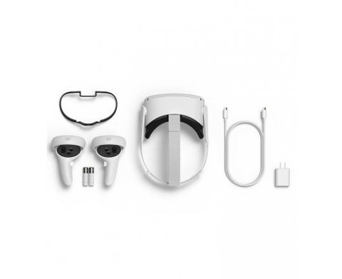 | Комплектация | VR-гарнитура Oculus Quest 2, контроллер Oculus Touch - 2 шт, кабель для зарядки, элемент питания АА - 2 шт, адаптер питания, подставка для очков |
