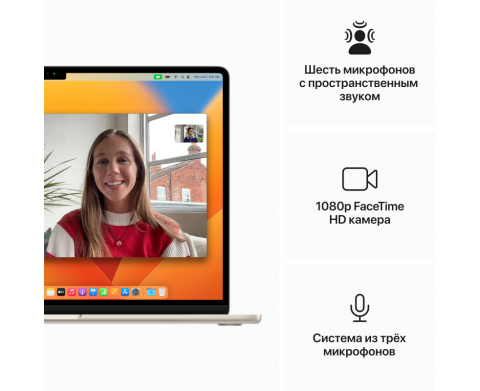 В новом 15-дюймовом MacBook Air больше места для любимых вещей благодаря большому дисплею Liquid Retina. Оснащенные чипом M2 и обеспечивающие до 18 часов автономной работы, оба ноутбука обеспечивают молниеносную производительность в ультрапортативном дизайне. MacBook Air — это все, что вам нужно — выберите размер, цвет и вперед. Какую бы модель вы ни выбрали, она создана с заботой о планете и имеет прочный корпус из 100% переработанного алюминия. А безвентиляторная конструкция означает, что он остается бесшумным даже при интенсивных рабочих нагрузках. Чип M2 ускоряет все, что вы делаете — редактируете ли вы видео для занятий, совместно работаете над бизнес-планом или транслируете шоу во время покупок в Интернете. А благодаря аккумулятору, работающему в течение всего дня , вы можете оставить адаптер питания дома.
