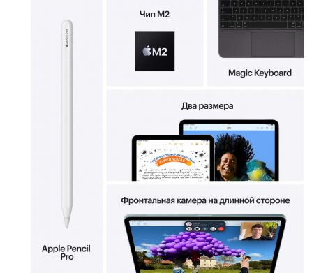 Обновлённый iPad Air 6-го поколения, Великолепный дисплей Liquid Retina 11" IPS, 60 Гц (2360x1640), iPadOS, Супермощный благодаря чипу Apple M2, ОЗУ 8 ГБ. Целый день работы без подзарядки. Фронтальная камера в ландшафтном режиме. Доступен в четырёх великолепных цветах.