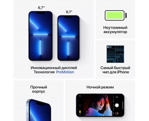 Характеристики Apple iPhone 13 Pro, 128 ГБ, «небесно-голубой» (MLW43)