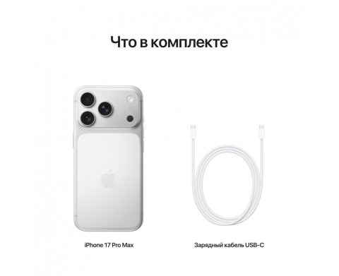 Самый «дальнозоркий» и автономный iPhone в линейке: 6,9″ ProMotion-дисплей, новый A19 Pro с паровой камерой охлаждения, и три 48-МП камеры с тетрапризмой дают «оптического качества» зум до 8× (экв. до 200 мм) и широкий диапазон фокусных (16×). Передняя 18-МП Center Stage прокачала селфи и видео, а Ceramic Shield 2 спереди + Ceramic Shield сзади делают корпус заметно устойчивее к царапинам и ударам. Есть Action Button и отдельная кнопка Camera Control, Wi-Fi 7, USB-C с USB 3 (до 10 Гбит/с) и самая длинная заявленная работа от батареи в серии.