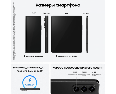 | Фронтальная камера | 10 Мп (на внешнем экране, 85˚) |
